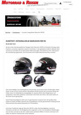 A legfrissebb 2020-as teszten is kiválóan szerepelt a sisak , a nemzetközi Motorrad Reisen magazinnál: